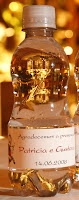 garrafinha de água mineral de 300 ou 500 ml, rótulo adesivo com o nome dos noivos, data e agradecimentos. Pode ser finalizada com fita de cetim. Normalmente é colocada uma garrafinha por carro estacionado no valet. Caso não haja este serviço é distribuída na saída, uma unidade por casal. Em ambos os casos com as frases: Você é muito importante para nós!! Volte com Cuidado!